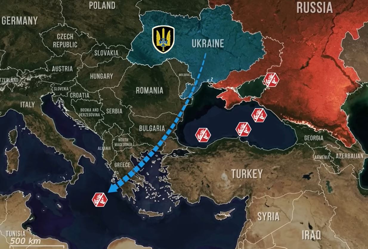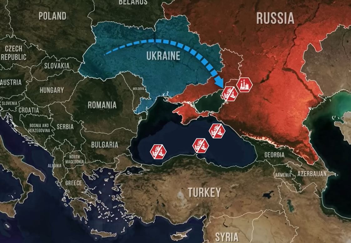Screenshot from Reporting From Ukraine's video.With new seas added by the day, the Ukrainian campaign deepens the strain as Russia loses access to its buyers and important revenue.