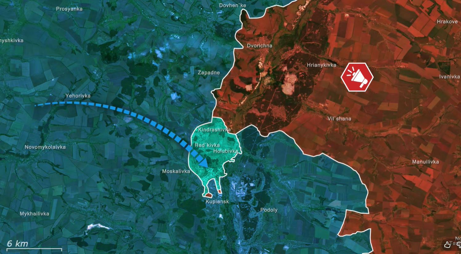 Ukrainian forces tighten the noose around remaining Russian unitsWith the enemy exhausted, the Ukrainian plan entered the next phase; clear the outskirts to prevent any escape and tighten the noose around the Russian forces still inside. Ukrainian units quickly liberated Radkivka and Kindrashivka, followed by operations in Moskalivka and the northwestern outskirts of Kupiansk itself.